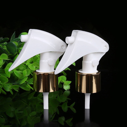 ปั๊มฉีดพ่นแบบทริกเกอร์ขนาดเล็กทำจากพลาสติกมีปลอกอลูมิเนียมสีทอง/เงิน/แหวน