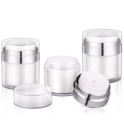 Yeni tasarım kozmetik ambalaj 15g 30g 50g 100g yuvarlak şekil PS çift duvar havasız pompa krem kavanoz
